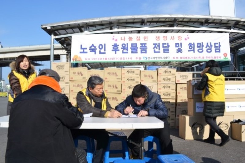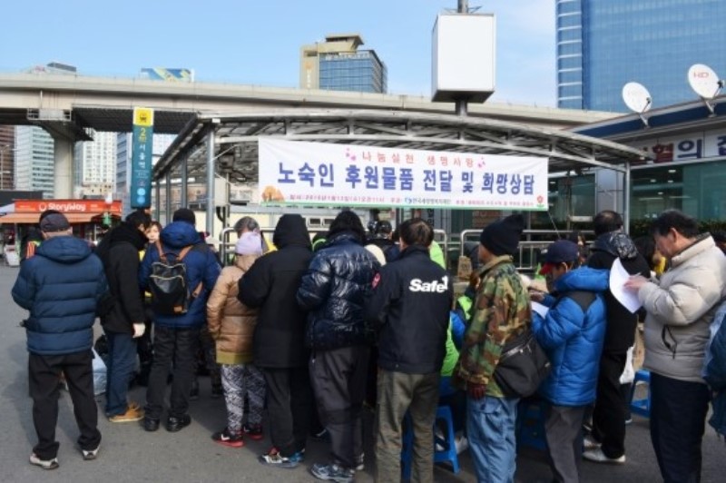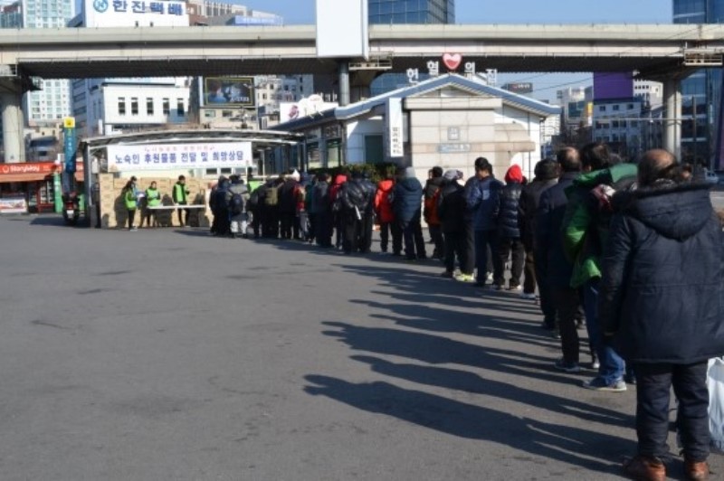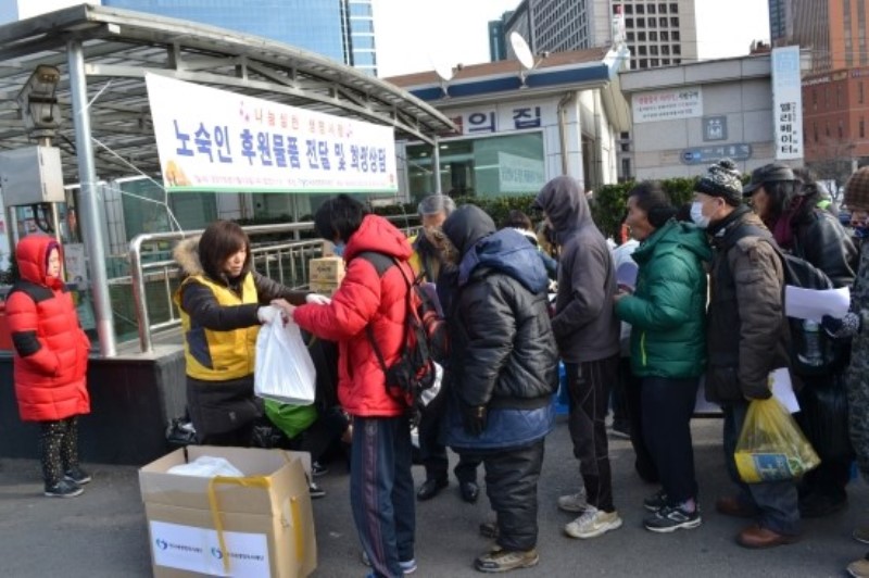 2016³â 1¿ù13ÀÏ ¼¿ï¿ª±¤Àå¿¡¼ ³ë¼÷ÀÎ ÈÄ¿ø¹°Ç° Àü´Þ ¹× Èñ¸Á»ó´ãÀ»